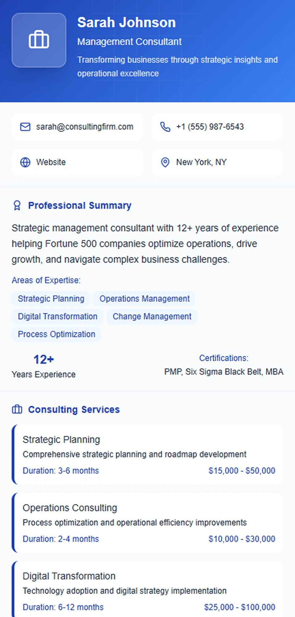 Choose from a variety of professional digital business card templates that match your brand style.