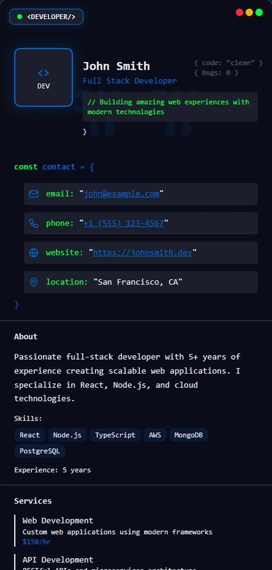 Professional networking made simple. Tap to instantly share your contact information, social profiles, and business details.